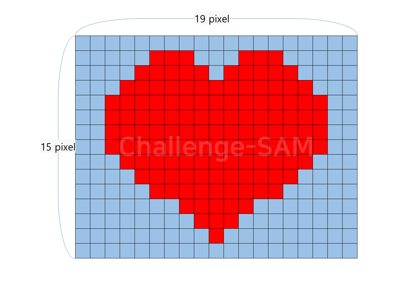 해당 이미지가 위와 같이 가로 19 픽셀, 세로 15 픽셀을 가진 이미지라고 한다면 각 픽셀마다 자신의 색상 정보를 BGR 3채널로 가지고 있다.
